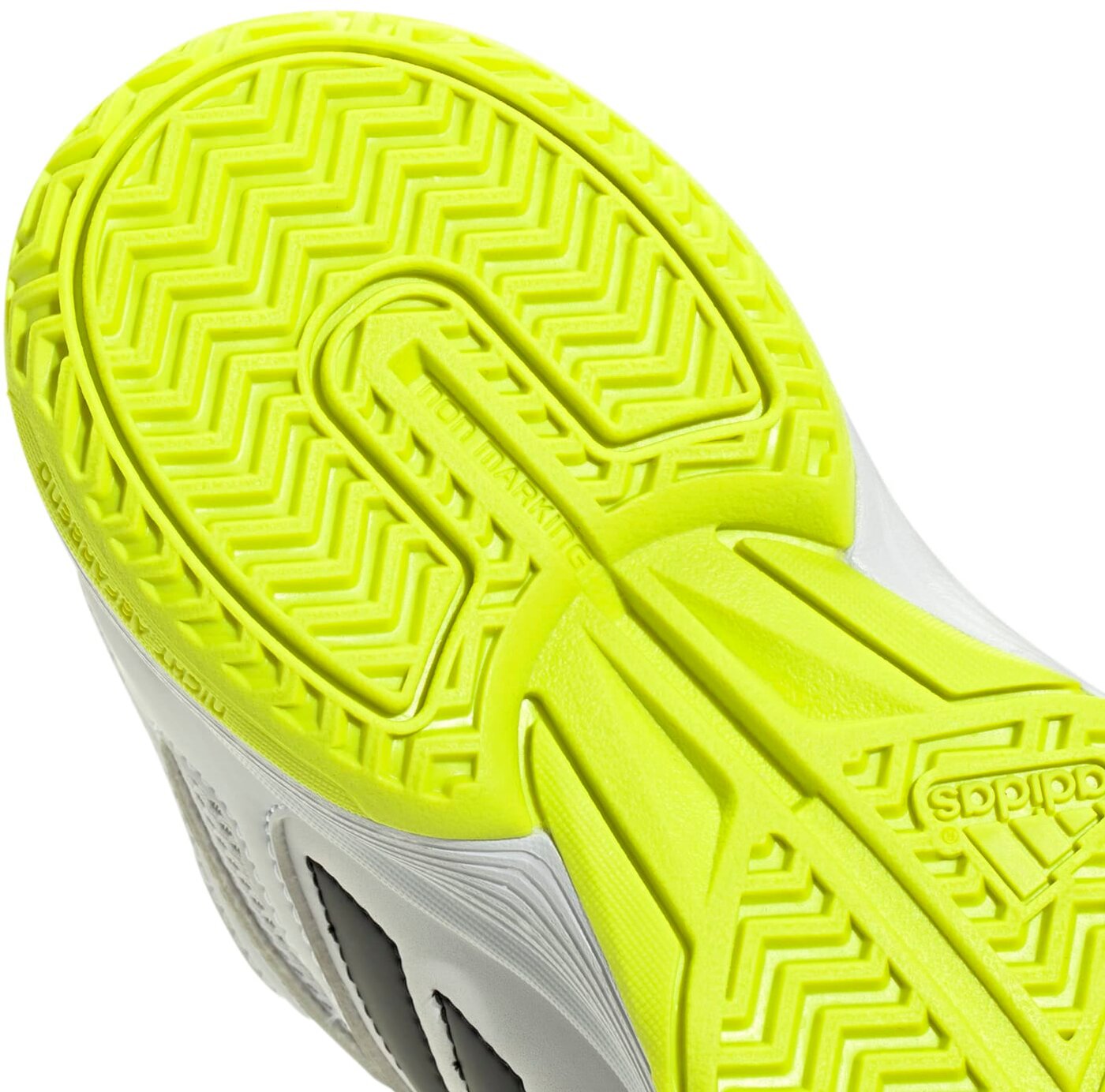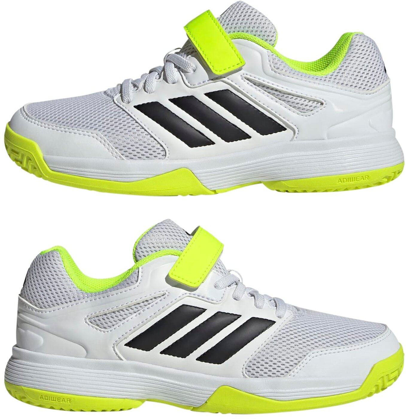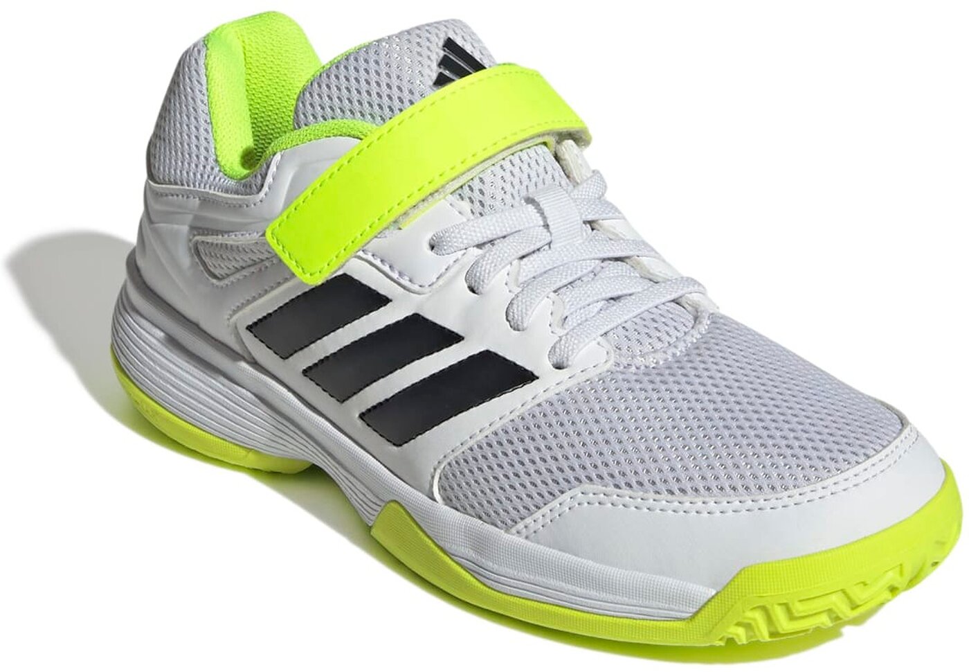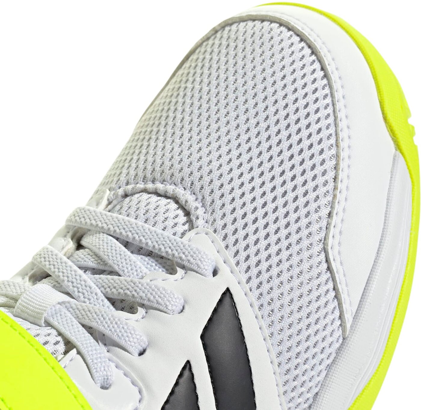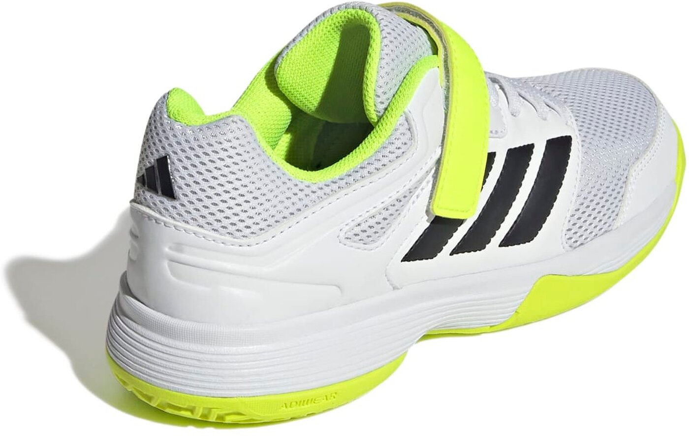Sieh ihnen dabei zu, wie sie in diesen Hallenschuhen von adidas für Kinder über den Platz fliegen. Durch die griffige Gummiaußensohle können sie mit den schnellsten jungen Spielern mithalten. Das belüftende Obermaterial aus Mesh sorgt dafür, dass sie kühl bleiben, und eine Kombination aus Riemen und Schnürsenkeln bietet bequemen Halt. Auf der griffigen Adiwear Außensohle dämpft weiches EVA jeden Sprung und Sprint.