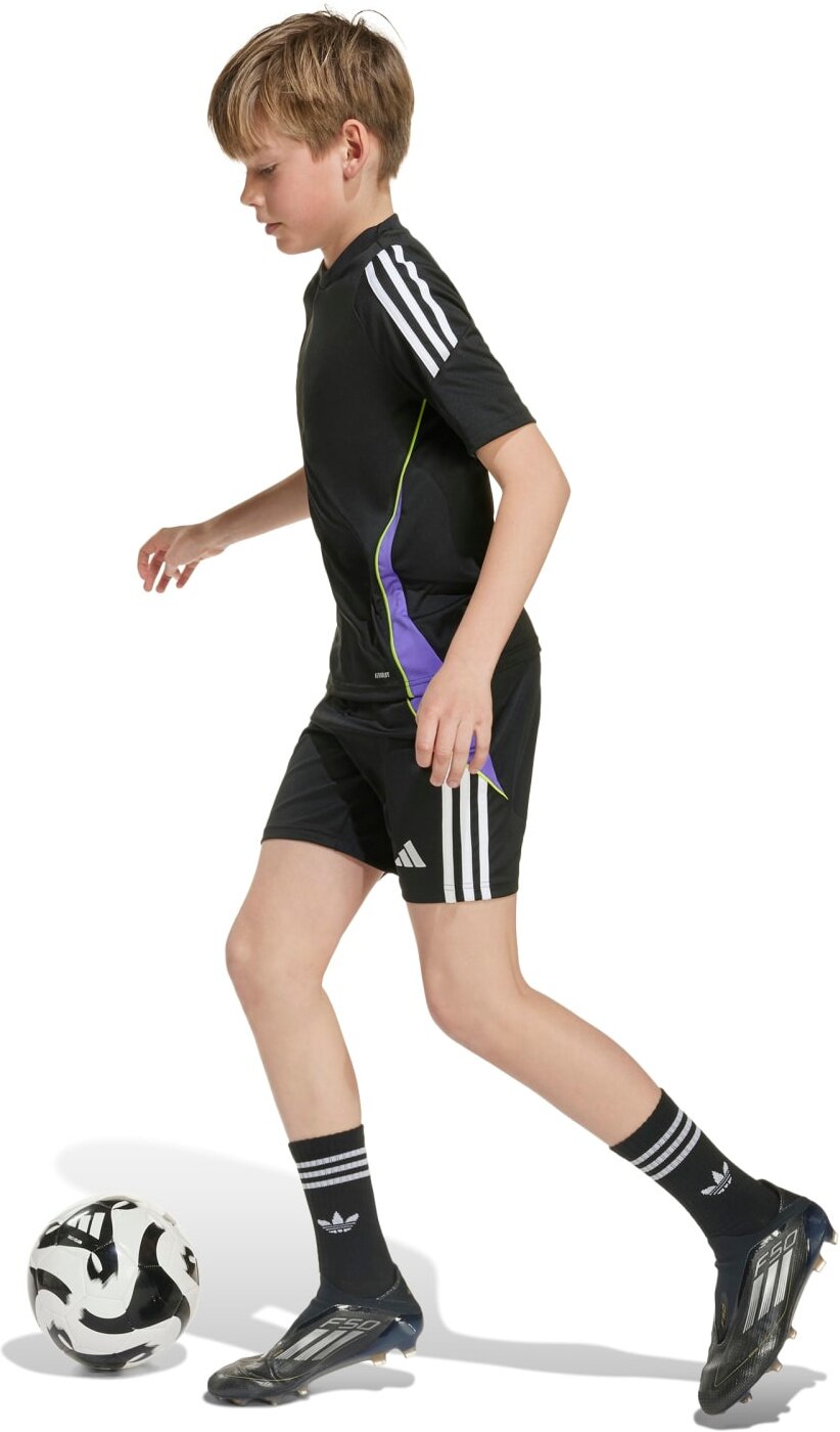In diesen Tiro 24 Trainingsshorts für Kinder und Teens bist du in deinen Bewegungen frei und kannst so entspannt an deinen Skills feilen. Inspiriert von den kultigen Designs der adidas Fußballtrikots bieten die Shorts dank weichem Interlock-Material und feuchtigkeitsregulierendem AEROREADY Material auch bei intensivem Training höchsten Tragekomfort. Verstaue das Nötigste in den Reißverschlusstaschen und konzentriere dich auf die Optimierung. Material: 100 % Polyester (recycelt)