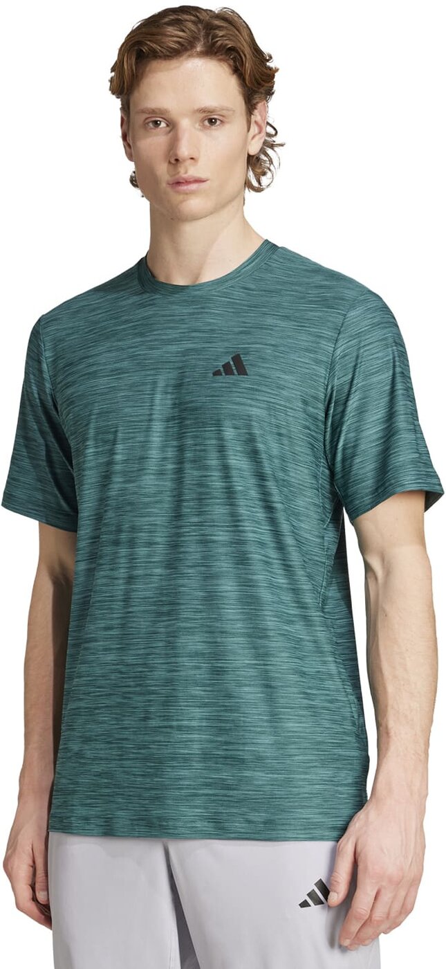 Krafttraining, Dehnen und Strecken. Dieses adidas Trainingsshirt gibt dir bei jedem Workout volle Bewegungsfreiheit. Das atmungsaktive Material ist besonders flexibel und garantiert mit seinem Schnitt einen sicheren Sitz ohne Verrutschen. Außerdem sorgt die AEROREADY Technologie für ein angenehm trockenes Tragegefühl. Das Produkt ist Teil unseres Engagements gegen Plastikmüll und hat einen Recycling-Anteil von mindestens 70 %. Material: 92 % recycelter Polyester, 8 % Elastan (Single Jersey)