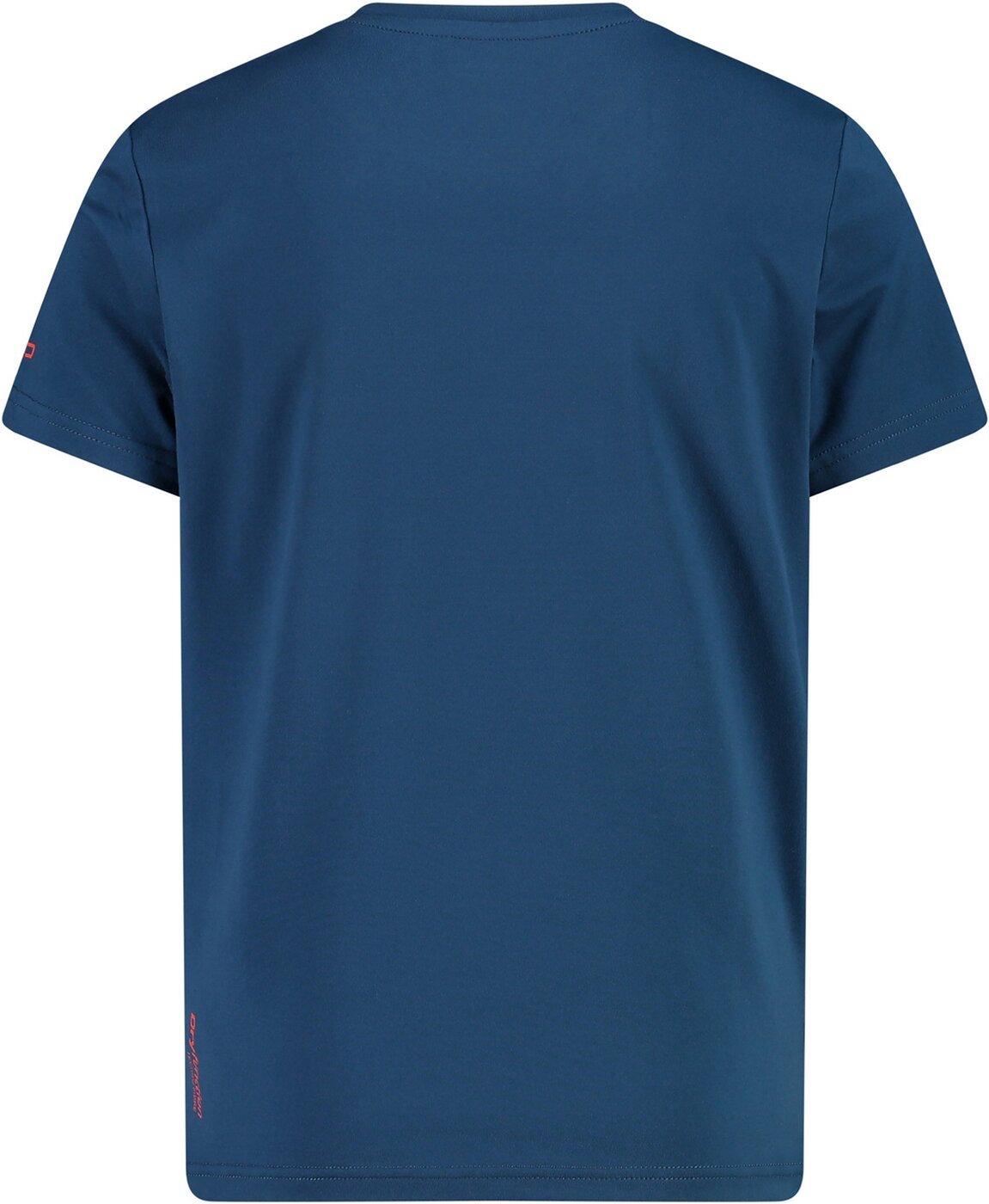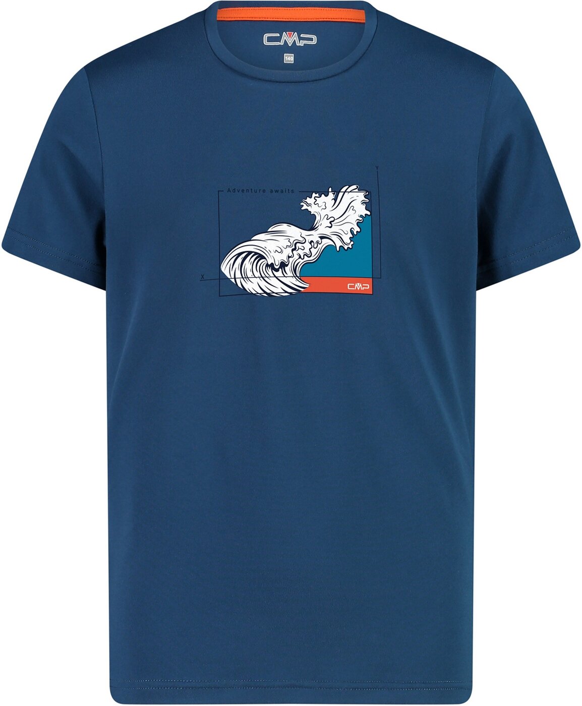 Kinder-T-Shirt aus Stretch-Jersey, in lebhaften Farben und mit einem Aufdruck, der an Camping und Abenteuer erinnert. Ein multifunktionales Kleidungsstück für Schule und Freizeit in der schönen Jahreszeit. Material: 92% Polyester 8% Elasthan