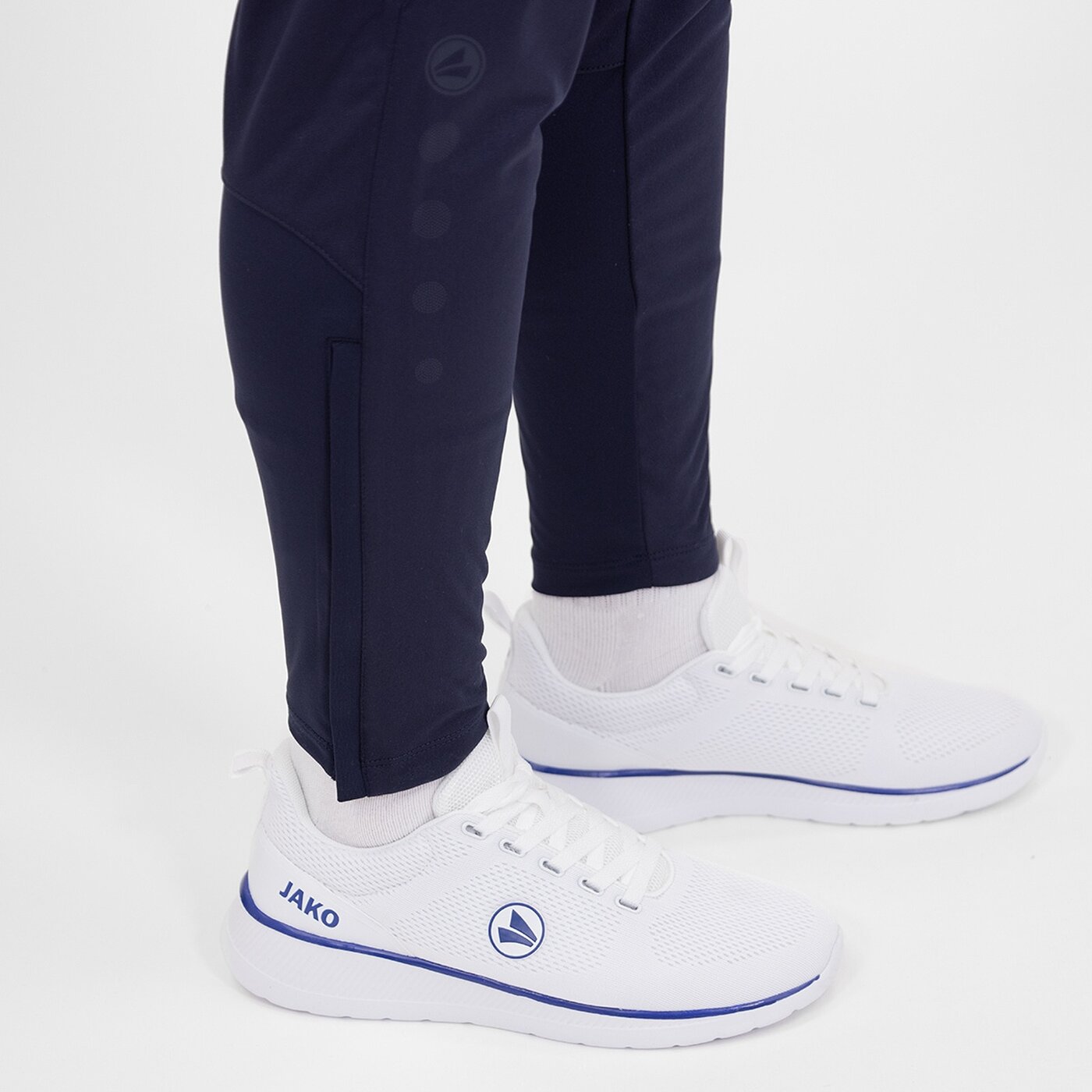 Mit zweiteiligem elastischem Bund und Kordelzug hält die JAKO Polyesterhose Power auch bei intensiven Bewegungen. Sie besitzt im Beinabschluss sowie in den Seitentaschen einen Reià verschluss. Der Wadenbereich ist mit einem elastischen Einsatz ausgestattet, um noch mehr Freiraum zu schaffen. Alle eingesetzten Materialien bestehen aus 100 % recyceltem Polyester und machen die Polyesterhose Power besonders nachhaltig. Der moderne Schnitt in Knöchellänge verleiht der Polyesterhose Power eine trendige Note. Wichtig zu beachten: Der moderne Schnitt in Knöchellänge gilt nur für die Hosen in Erwachsenengröà en. Material: Matt-Polyester-Tricot; 100 % Polyester (recycelt); Wadeneinsatz: 90 % Polyester (recycelt), 10 % Elasthan