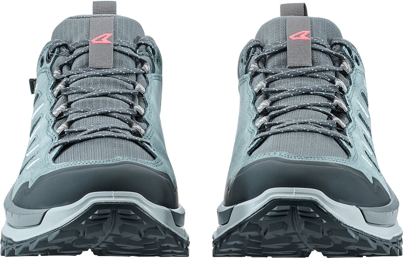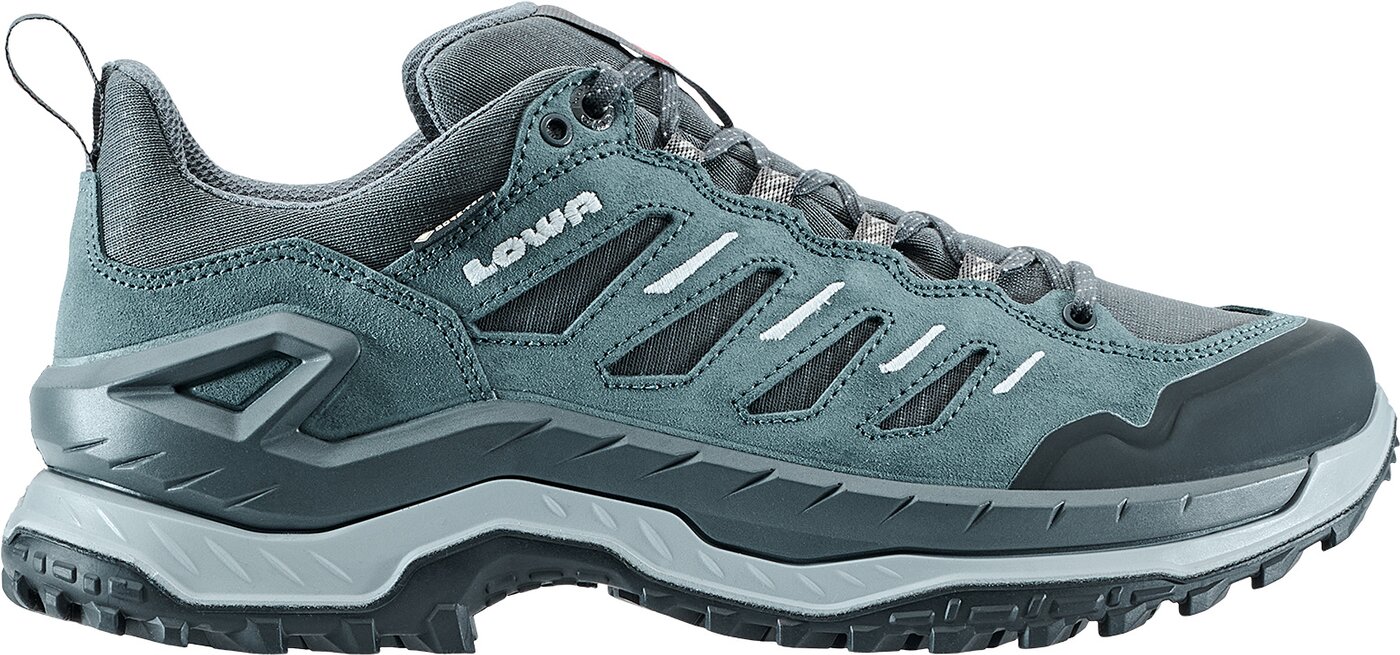 Der dynamische Wanderhalbschuh INNOVO GTX LO verfügt über eine zweifach angespritzte und komfortabel dämpfende LOWA® DYNAPU®-Zwischensohle sowie einer neugestalteten Laufsohle im ?Chunky Style?, die dank des multidirektionalen Stollendesigns und der dadurch größeren Kontaktfläche optimalen Grip bietet. Beim Tragekomfort geht der Hiking-Schuh neue Wege und profitiert von einem robusten Materialmix aus Spaltleder und Textil, wasserdichter GORE-TEX Membran sowie einer Vielzahl atmungsaktiver Flächen. Ergänzt werden diese Features durch einen hochgezogenen Zehenpuffer sowie Zugschlaufen für den leichteren Ein- und Ausstieg. Dank seiner grundsoliden Sohlenkonstruktion und des flexiblen, aber robusten Schafts glänzt der INNOVO GTX LO mit einem tollen Mix aus Stabilität, Support und Dynamik. Material: Textil, Veloursleder, Thermoplastisches Polyurethan