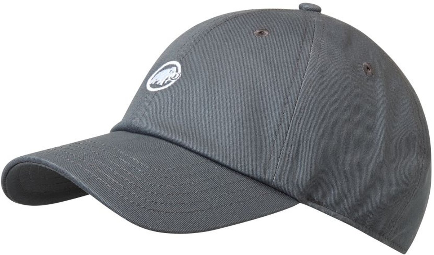 Baseball Cap Mammut. Klassisches Cap aus sechs Panels. Der leicht gebogene Schirm schützt die Augen vor direkter Sonneneinstrahlung. Dank der Verschlussschnalle auf der Rückseite lässt sich die Kappe individuell an die Kopfform anpassen. Das dezente Mammut Logo in hochwertigem Stick oder als Lederimitat-Patch rundet das Design ab. Material: Hauptmaterial: 100% Baumwolle