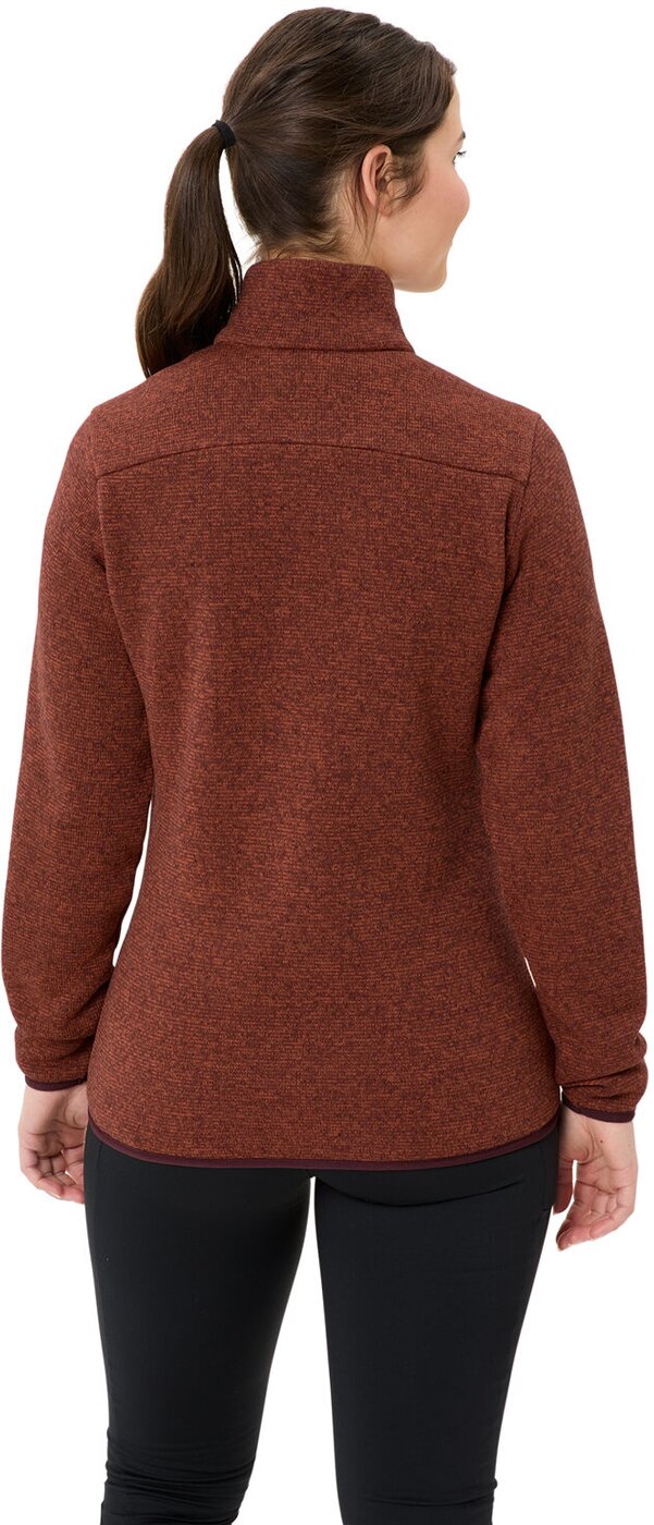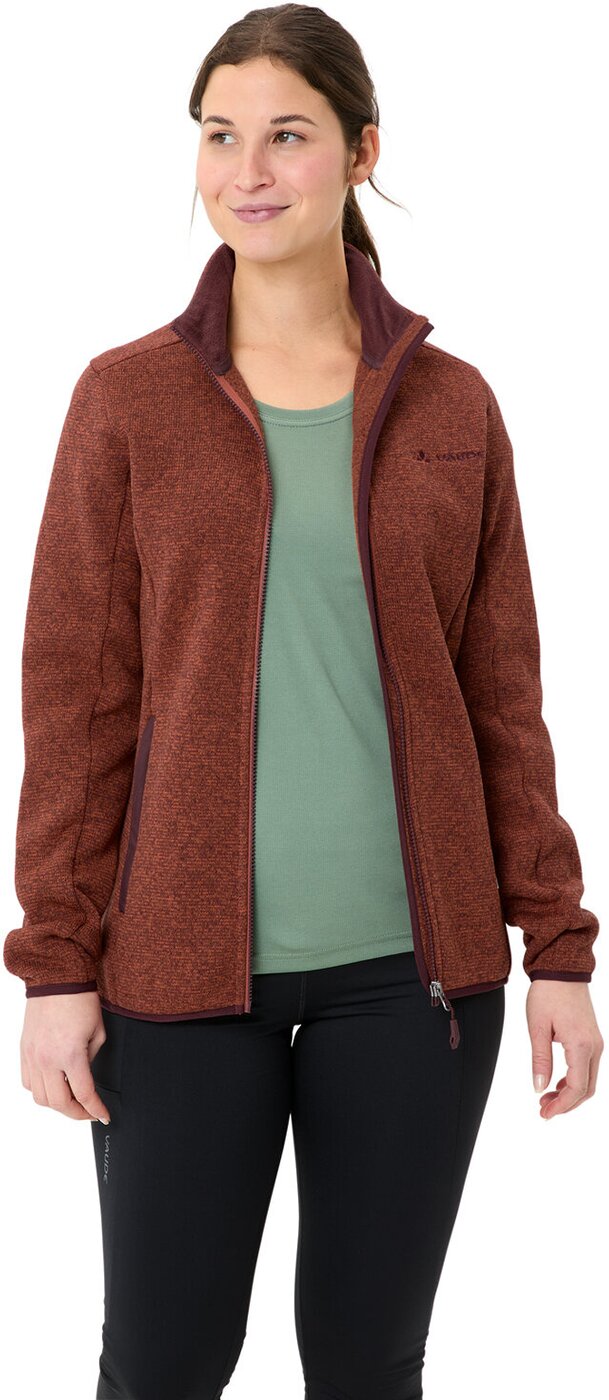 Vielseitig und dabei schick: Wenn die Temperaturen langsam wieder runtergehen, dann ist die Rienza Jacket IV für Damen die richtige Wahl. Die bequeme und wärmende Damen-Fleecejacke fühlt sich angenehm an und ist sehr strapazierfähig. Sie engt nicht ein und ist daher ein idealer Partner bei sportlichen Aktivitäten oder im Alltag. Die Fleecejacke für Damen eignet sich als wärmende Schicht unter Regen- oder Winterjacke, reicht bei einer Herbstwanderung aber auch allein aus. Das umweltfreundliche Fleecematerial hält auch bei schweißtreibenden Aktivitäten warm und trocken. Die klassische Strickoptik im Melange-Look macht die Fleecejacke für Damen zum Hingucker, was auch durch das feminine Design unterstrichen wird. Der kuschelige Stehkragen hält den Nackenbereich angenehm warm und trocken. Die beiden seitlichen Reißverschlusstaschen dienen als Handwärmer oder bieten Platz für Kleinigkeiten. Die Rienza Jacket IV wurde zu 100 % aus recyceltem Polyester hergestellt. Das VAUDE Green Shape-Label steht für ein umweltfreundliches, funktionelles Produkt aus nachhaltigen und bluesign® zertifizierten Materialien. Als Mitglied mit Leader Status bei der unabhängigen Organisation Fair Wear engagiert sich VAUDE für faire Arbeitsbedingungen und faire Löhne. Material: Hauptstoff: 93% Polyester (recycelt), 7% Elasthan, Netzfutter: 100% Polyester (recycelt)