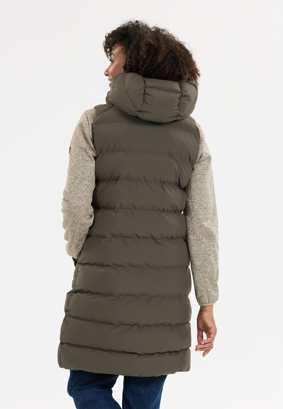 Hier kommt die stylische “Joana” Weste für Damen von Whistler ? die perfekte Wahl für alle, die an kalten Tagen nicht auf Bewegungsfreiheit verzichten wollen. Inspiriert vom beliebten Daunenmantel, überzeugt die Weste mit dem gleichen coolen, skandinavischen Look und einer durchdachten Funktionalität. Die verstellbare Kapuze schützt zuverlässig vor Wind und Wetter, während der hochwertige YKK-Reißverschluss für Langlebigkeit und Komfort sorgt. Dank einer Wassersäule von 10.000 mm und einer wasserabweisenden PU-Beschichtung hält die Weste auch bei Nässe angenehm trocken. Die pflegeleichte, waschbare Kunstdaunenfüllung sorgt für wohlige Wärme, ohne aufzutragen. Geräumige Taschen bieten Platz für kalte Hände oder wichtige Kleinigkeiten. Die “Joana” Weste ist ideal für den Übergang, den Lagenlook oder als stylisches Highlight an milden Wintertagen ? ein vielseitiger Begleiter für Damen, die Mode und Funktion clever kombinieren wollen. Material: 100% Polyester