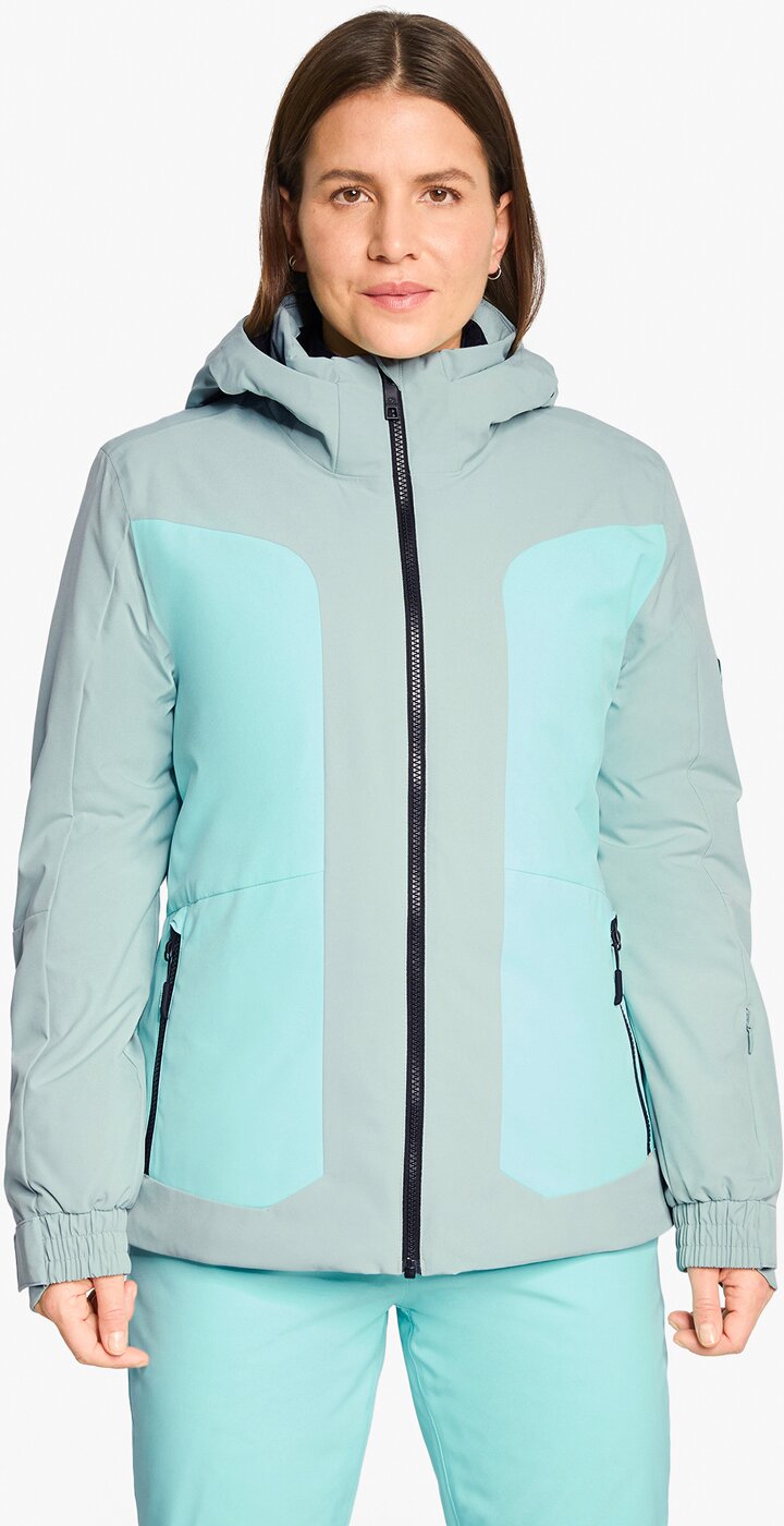 Die funktionelle, wattierte ZIENER Damen Skijacke TARLA-Z LADY überzeugt mit ihren zahlreichen Detaills sowie dem Einsatz von hochwertigen Materialien. Die atmungsaktive, wasser- und winddichte ZIENER AQUASHIELD® Membran (Wassersäule 10.000mm/Atmungsaktivität 10.000g/m²/24h) sorgt für ein warmes und trockenes Klima. Die Imprägnierung der Jacke ist PFAS-frei. Der Außenstoff ist bluesign® zertifiziert. Die 100g/m² Wattierung aus atmungsaktivem und leichtem Isolationsmaterial hält das Wärmegleichgewicht und garantiert höchsten Tragekomfort. Die wichtigsten Nähte sind verschweißt. Maximale Bewegungsfreiheit wird durch das elastische Obermaterial und Innenfutter geschaffen. Eine feste verstellbare Kapuze, elastische Ärmelinnenbündchen und der Schneefang zählen zur Basisausstattung. Mit den zwei praktischen Eingriffstaschen, weitere Taschen für Ski- und Sonnenbrille, einer Smartphone Tasche und einer Skipasstasche am linken Arm macht das Skifahren noch mehr Spaß. Material: Oberstoff 1: 100% Polyester (recycelt); Futter 1: 100% Polyester; Wattierung: 100% Polyester (recycelt)